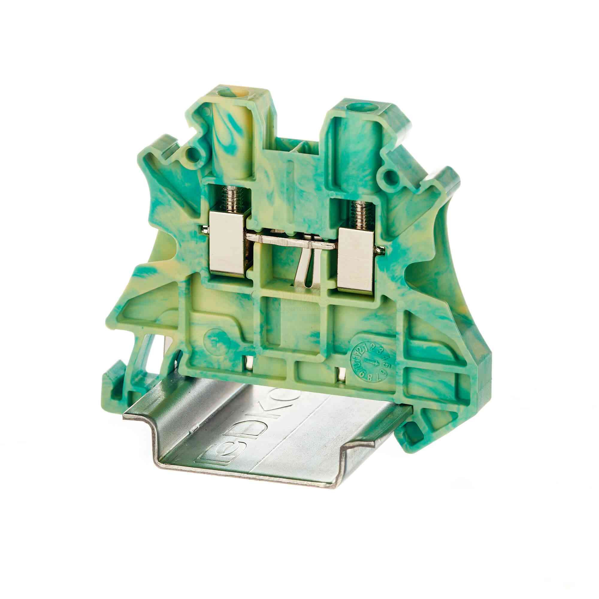 Клемма винтовая проходная 2 точки подключения 4мм.кв. желто-зеленая DIN