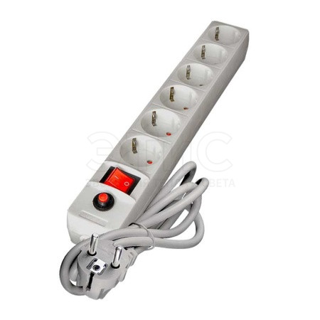 Сетевой фильтр 10А 220В 6х3м ПВС 3х0,75 с выключателем