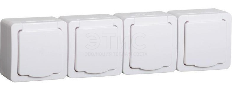 Розетка четырехместная наружная З/К 16А 220В IP54 белая Гермес PLUS