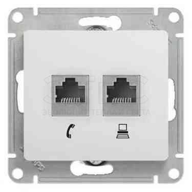 Розетка двойная скрытая компьютерная RJ11+RJ45 категория 5е в рамку белая