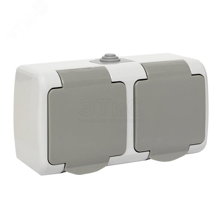 Розетка двойная наружная З/К С/Ш 16А 220В IP54 серая с крышкой Мурманск