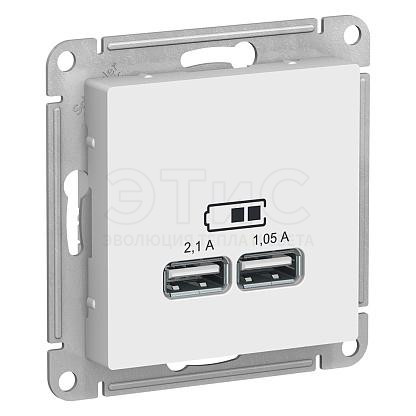 Розетка двойная скрытая USB 5В 1порт x 2,1 А 2 порта х1,05 А белый ATLASDESIGN