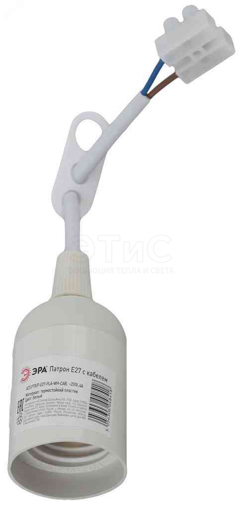 Патрон подвесной Е27 с клеммной колодкой,пластик, белый