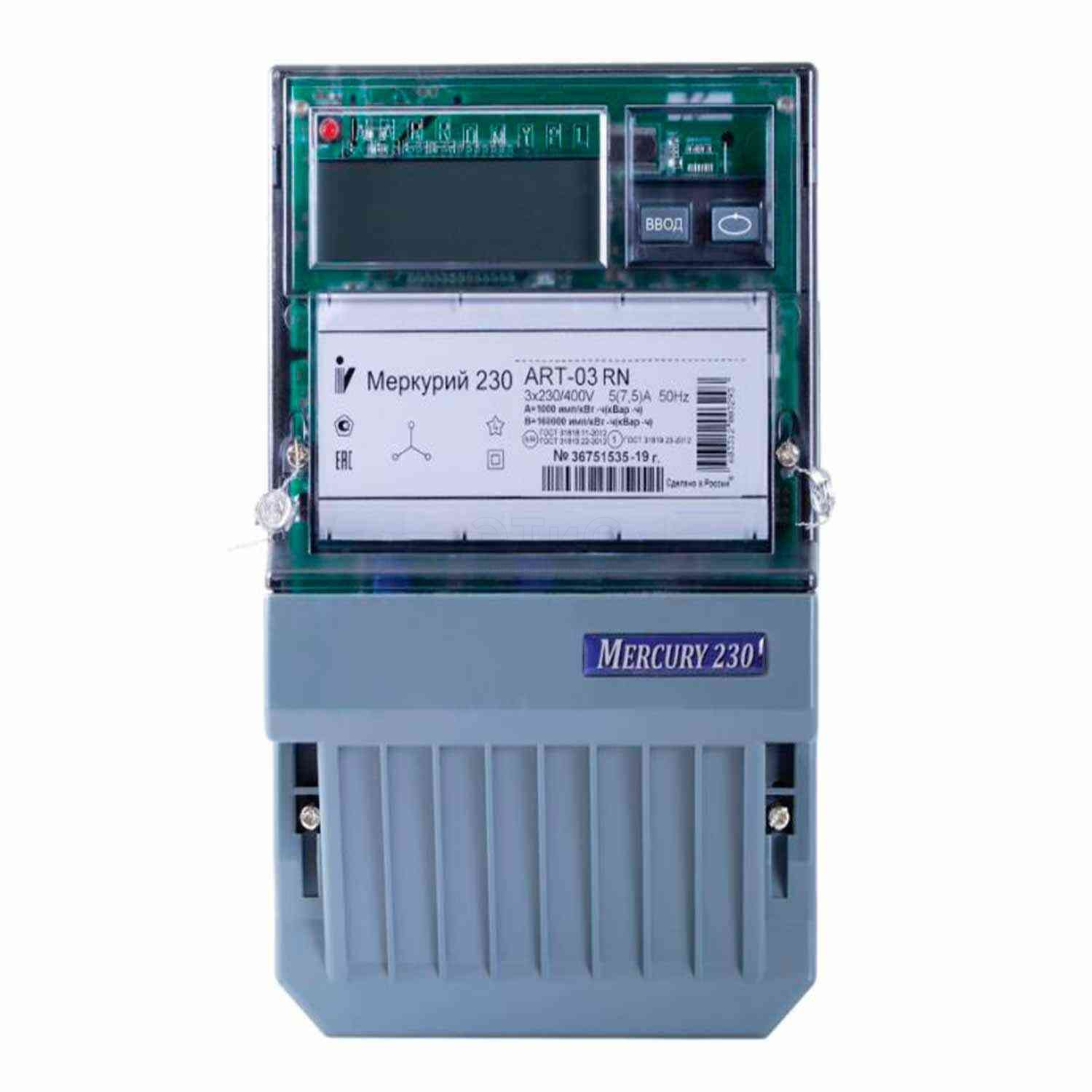 Счетчик электроэнергии трехфазный АRT-03 RN многотариф. 5(7,5)А класс точн. 0.5S 1 Щ, ЖКИ, RS485 2 Тарифа МСК+2 Меркурий