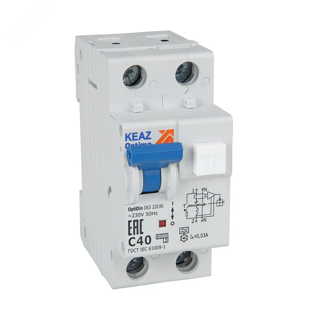 Выключатель автоматический дифференциальный АВДТ 2П 16А 30мА A OptiDin D63-22C16-A-У3 6кА