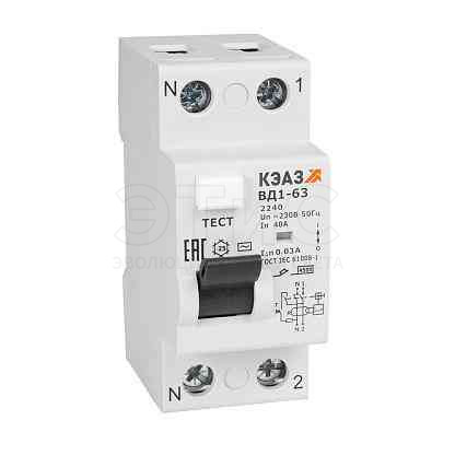 Выключатель дифференциального тока УЗО 2П 16А 30мА ВД1-63-2216-АС-УХЛ4 без защиты от сверхтоков