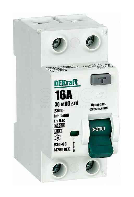 Выключатель дифференциального тока УЗО 2П 16А 30мА A 6кА УЗО-03